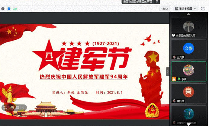 活动最后,全体成员通过弹幕共同为中国人民解放军建军94周年表示衷心的祝贺。