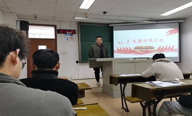 然后,由即将转为预备党员的发展对象汇报自己对党的认识以及入党动机;李俊达同志在大会上就自己的主要情况作简单汇报,他的入党动机明确;在疫情期间,李俊达同志不仅见到身边的党员同志冲锋在抗疫的前线;同时李俊达同志自己也在抗疫中参加志愿者活动,从身边那些共产党员身上看到许多无私的奉献精神,从那时起,李俊达同志就坚定:此生一定成为真正的共产党员。
