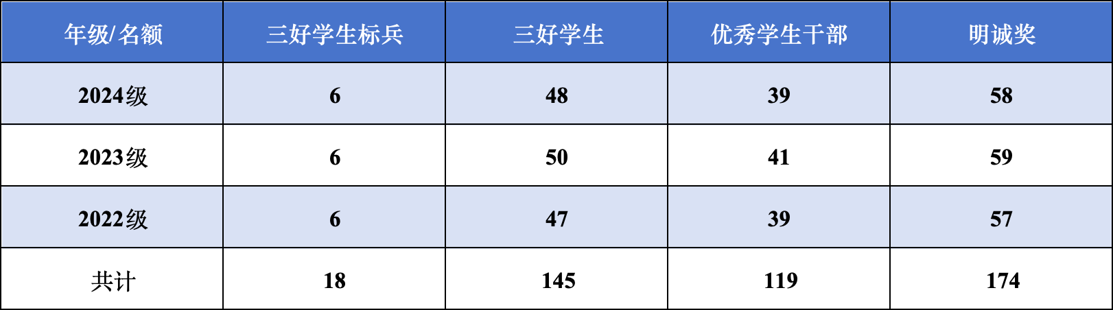 2.各年级三好学生标兵、三好学生、优秀学生干部、明诚奖名额分配表