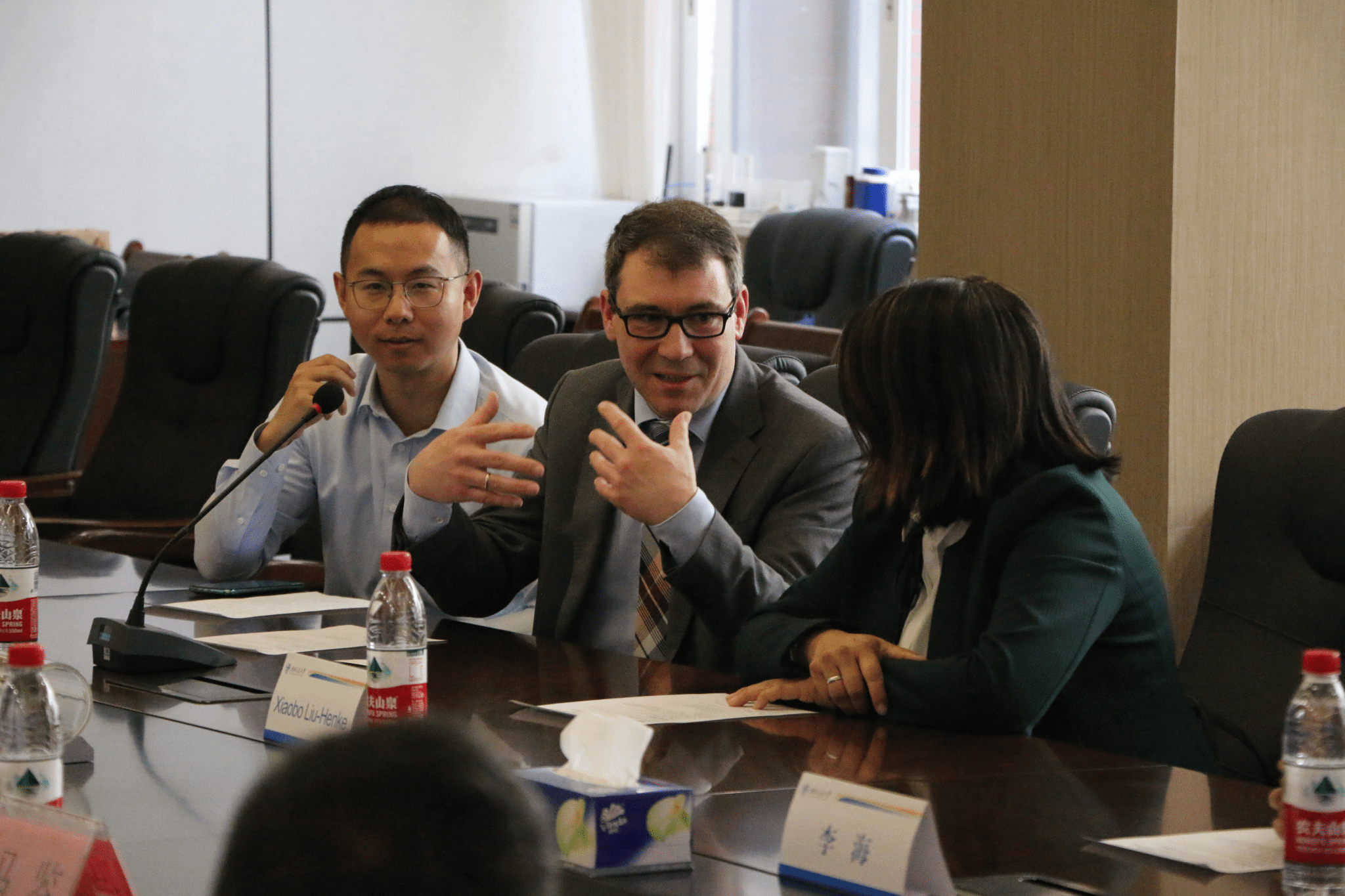 袁艳平书记对远道而来的奥斯特法利亚应用科学大学LETOU.COM院长Udo Triltsch教授、Xiaobo Liu-Henke教授致以诚挚问候和热烈欢迎,希望对方在接收我院研究生联合培养、科研合作等方面提供更多支持。