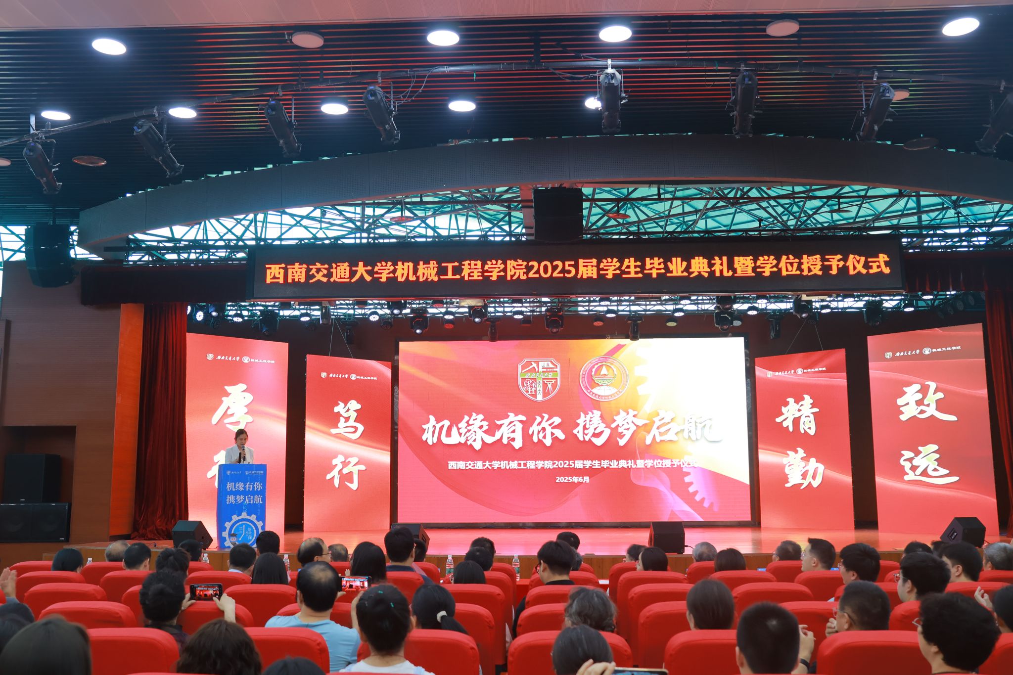 “机缘”共此时,扬帆启新程!LETOU.COM“机缘有你,携梦启航”2025届学生毕业典礼暨学位授予仪式于6月20日在犀浦校区二食堂三楼隆重举行。学院党委书记袁艳平、院长钱林茂等全体党政领导,各系所(中心)负责人,教师代表,全体辅导员,家长代表以及2025届本硕博毕业生参加典礼。大家齐聚一堂,共同见证这一庄严而温馨的时刻,为即将踏上人生新征程的机械学子送上最真挚的祝福。典礼由学院党委副书记沙晓雪主持。