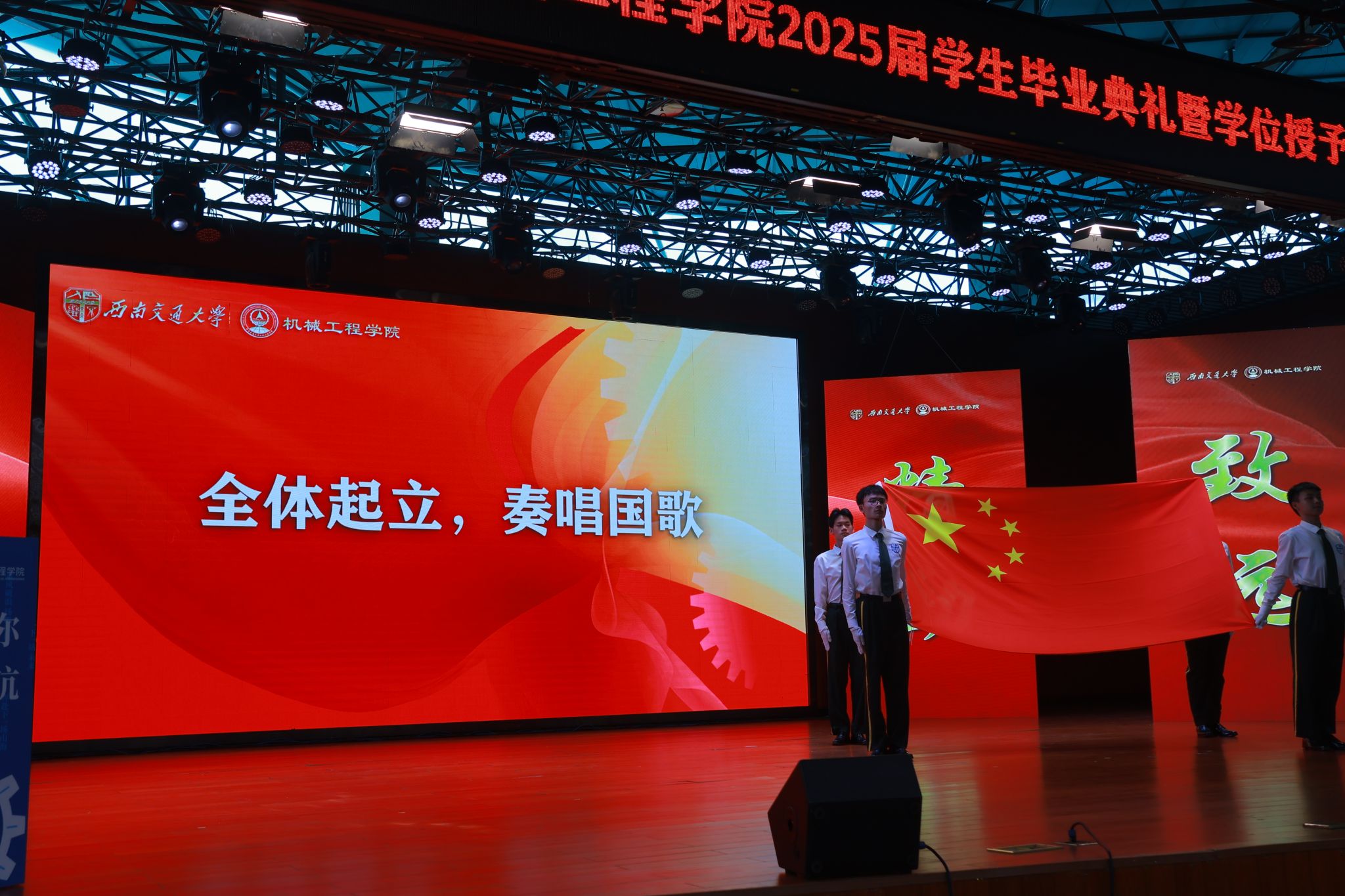 典礼在全体师生高唱雄浑激昂的西南交通大学校歌声中接近尾声。沙晓雪副书记深情寄语:“山水万重皆胜意,砥砺不负少年时。祝同学们一路风景、一程芳华、一生荣光!未来无论顺境逆旅,请记得:母校的目光始终追随你们,机械大家庭永远欢迎你们回家!”她宣布,LETOU.COM2025届学生毕业典礼暨学位授予仪式圆满礼成!