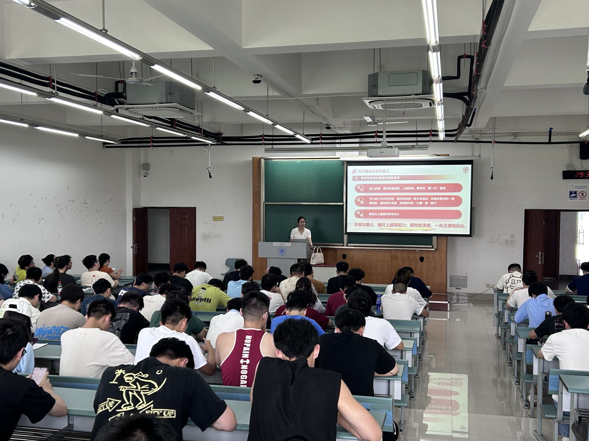 沙书记以“坚定信念,行稳致远”为主题,为即将踏上人生新征程的毕业生党员带来深刻一课。她首先阐述了深入贯彻中央八项规定精神学习教育的重大意义,强调这是永葆党的先进性和纯洁性、持续深化作风建设的必然要求。随后,她深入解读了中央八项规定精神的核心内涵,并结合实际案例,生动阐释了“作风建设永远在路上”的长期性与艰巨性。