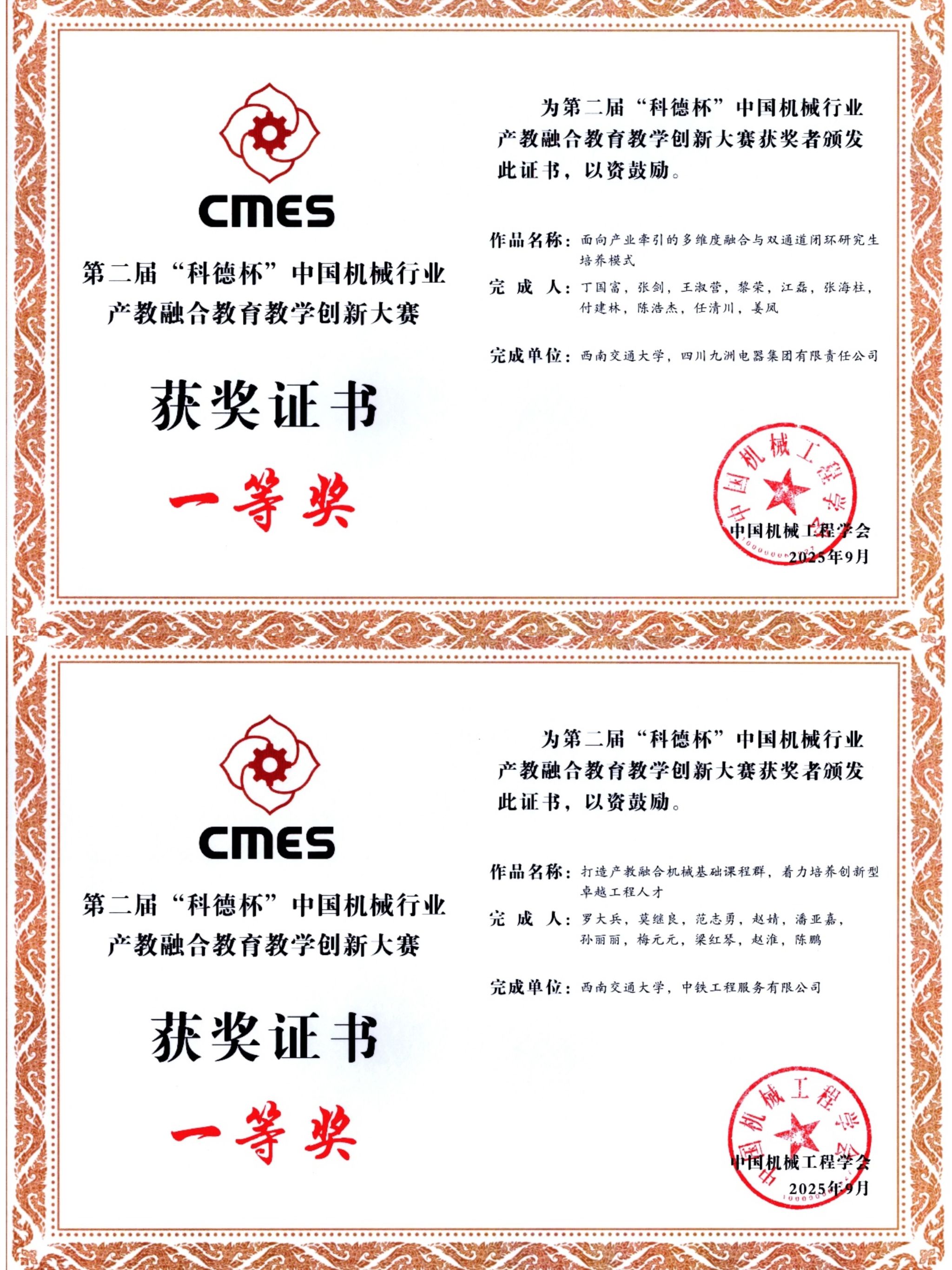 为认真贯彻《教育强国建设规划纲要(2024-2035)》精神,全面落实立德树人根本任务,推动产教融合、科教融汇、职普融通走深走实,加快培育新质生产力,服务经济社会高质量发展,由中国机械工程学会、中国机械行业卓越工程师教育联盟主办的第二届“科德杯”中国机械行业产教融合教育教学创新大赛总决赛在广州举行,学院丁国富教授牵头团队、罗大兵教授牵头团队分别获研究生组、本科生组2项一等奖。