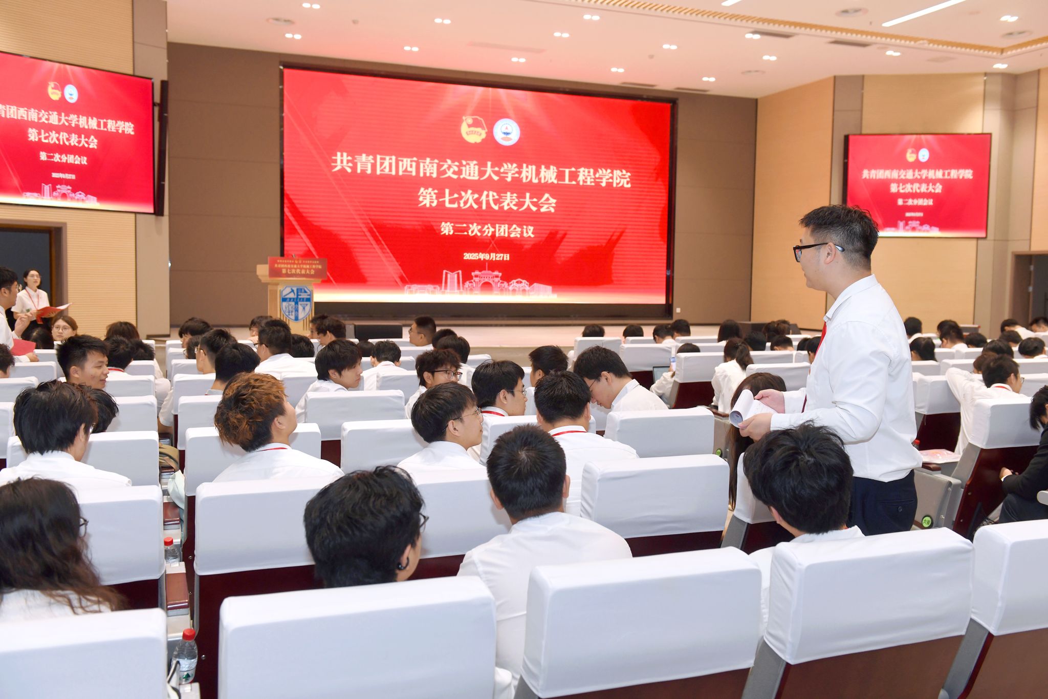 大会的主题是:高举习近平新时代中国特色社会主义思想伟大旗帜,全面贯彻党的二十大和二十届二中、三中全会精神,深入贯彻习近平总书记关于青年工作的重要思想和关于制造强国战略的重要论述,认真落实学校党委、学校团委和学院党委的各项决策部署,聚焦主责主业,强化思想引领,夯实组织基础,服务成长成才,着力培养具有家国情怀、科学素养、工程能力、创新精神的卓越机械人才,团结带领全院青年为加快推动学院内涵式高质量发展、为实现中华民族伟大复兴的中国梦贡献青春、智慧和力量。